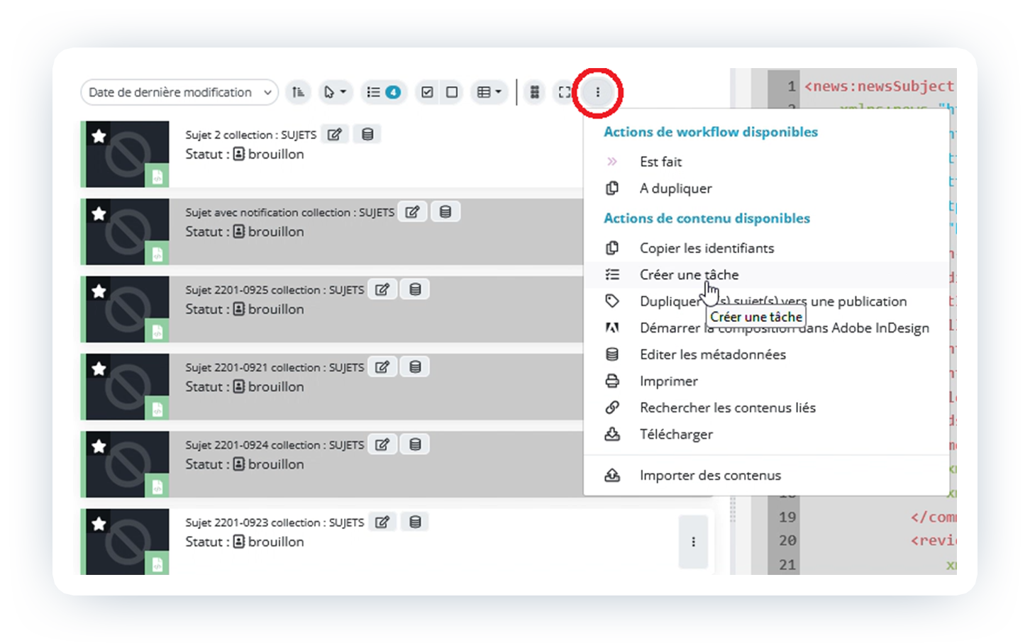 Exemple : en créant un lot de documents, la sauvegarde peut immédiatement les passer à l’étape de validation sans action supplémentaire.