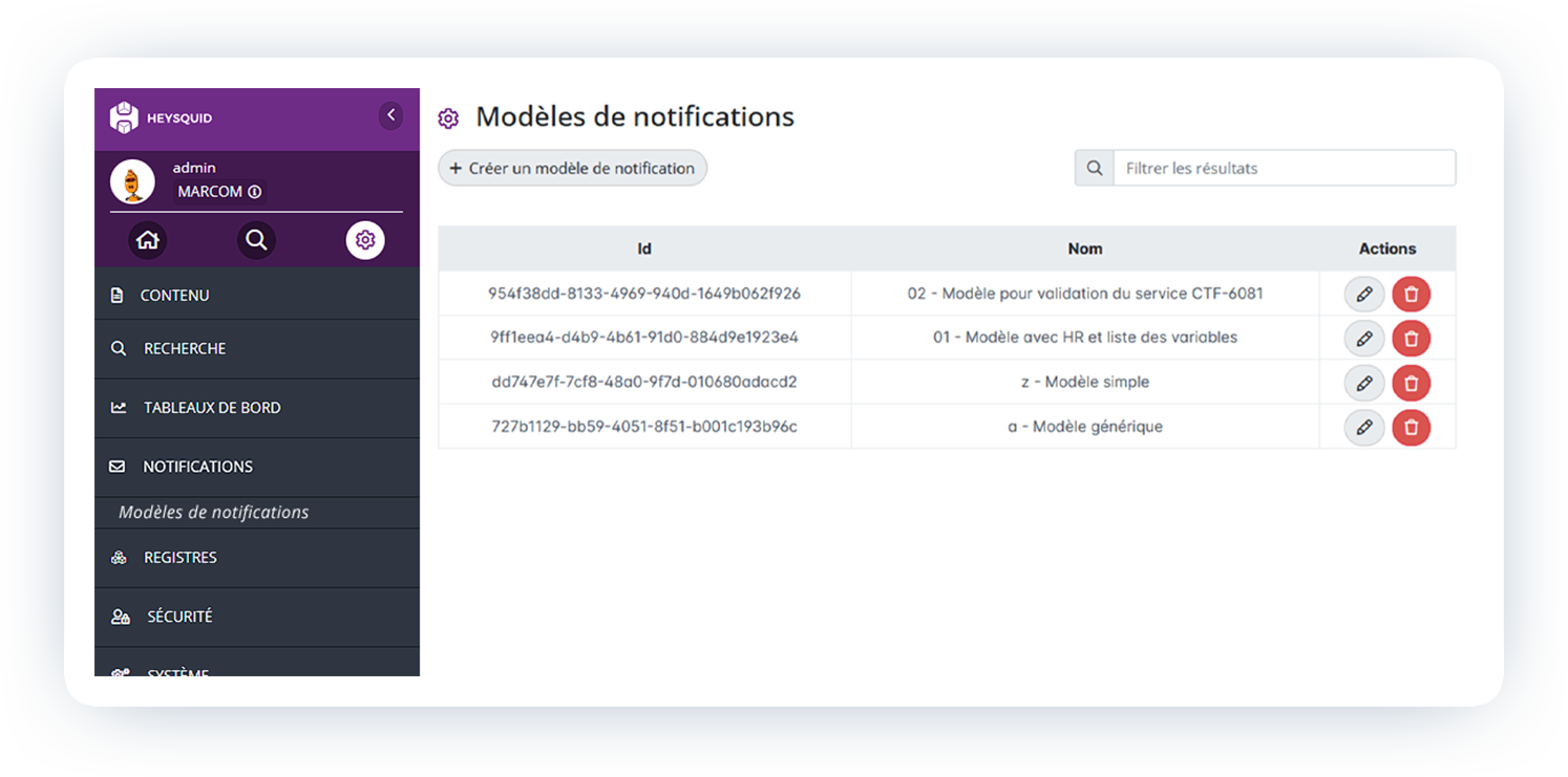 HEYSQUID unifie et améliore son système de notifications. Désormais, chaque transition de workflow peut être accompagnée d’une alerte ciblée, envoyée aux utilisateurs concernés.